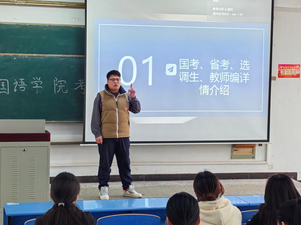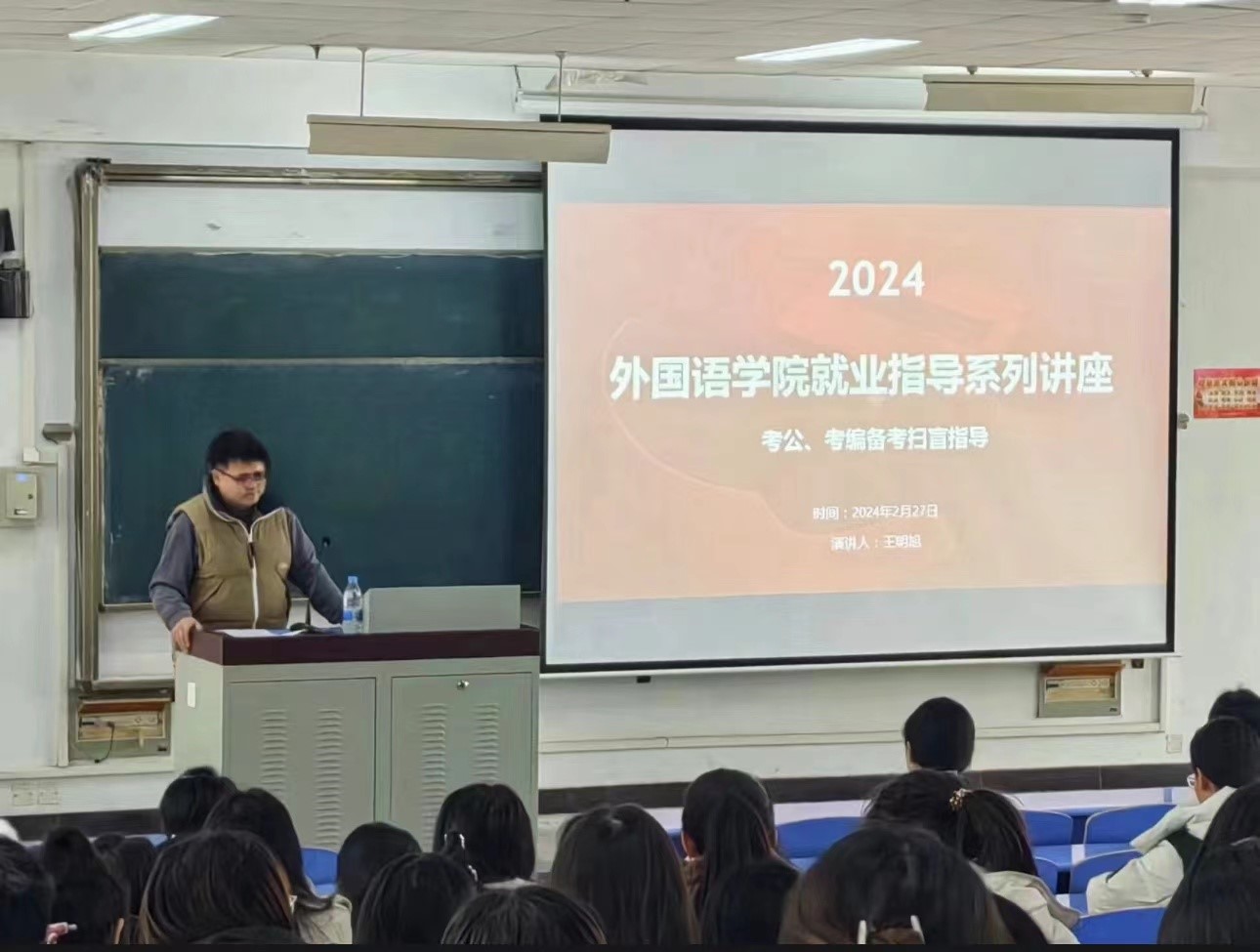 为切实提高外院员工考公率、考编率,转变员工就业意识,树立正确的就业观,更好地帮助毕业生就业、择业,太阳成集团tyc122ccvip开展“我的未来在就业”系列就业指导讲座活动,2月27日下午在北院文九阶梯举行了《公务员、事业编考试基础知识扫盲》讲座,开启了此项系列讲座活动。主讲人为深耕考编考公4年的王明旭老师,2020级、2021级、2022级共180余名员工参加了本次讲座。