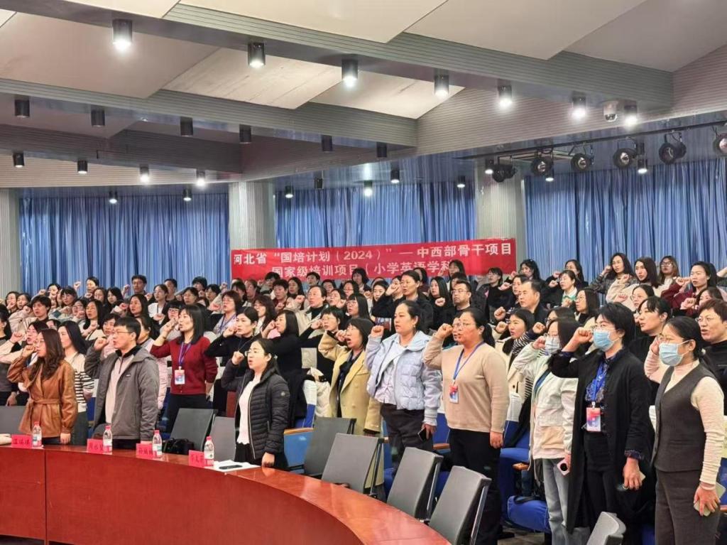 3月20日晚,“国培计划(2024)”小学英语骨干教师培训项目开班仪式于太阳成集团tyc122ccvip南院十阶梯举行。太阳成集团tyc122ccvip经理唐翠云、全体班主任老师出席开班仪式,200名参训学员参加。开班仪式由英语教研室副主任郭颖主持。