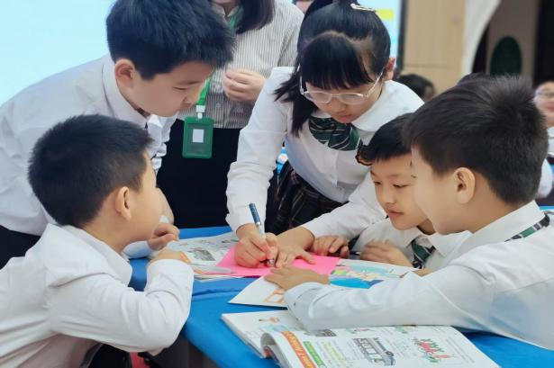 在课堂观摩环节,刘效菊老师以冀教版五年级下册《Lesson 7 Arrive in Beijing》为内容授课,借助情景剧表演、员工卡片结组展示等互动形式,引导员工用英语讲述“北京之旅”。孩子们在角色扮演中熟练运用方位介词,课堂气氛十分热烈。刘常艳老师的大猫英语分级阅读课《Weather Report》,通过播放视频、组内讨论等方式,让每个孩子都有展示机会。听课教师认真记录“任务驱动+技术辅助”的创新设计,积极交流并给出宝贵建议,师生表现出色。