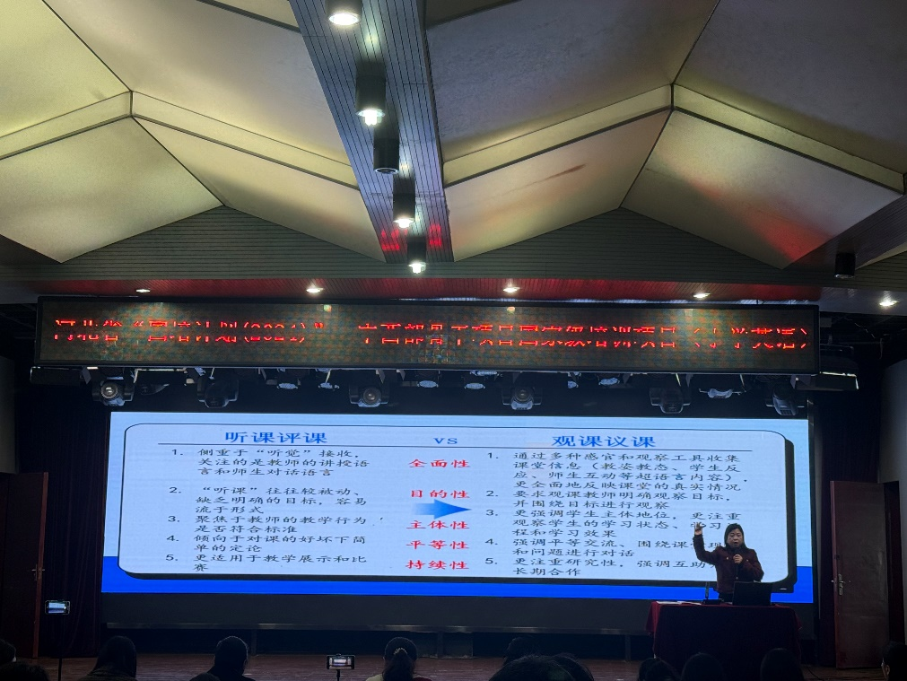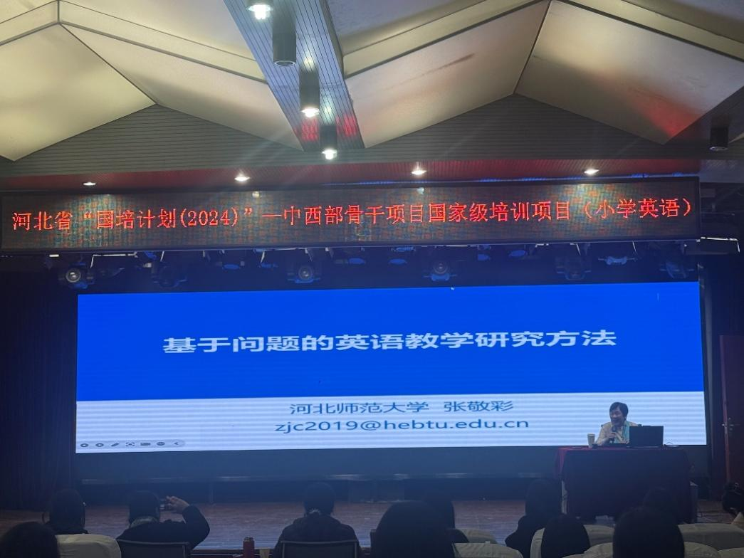 当天下午,河北师范大学副教授、硕士研究生导师,全国第六届教育硕士优秀教师张敬彩教授,以“基于问题的英语教学研究方法”为主题开讲。张教授凭借深厚的学术功底,结合丰富的教学实例,深入讲解行动研究、案例研究等实用教学研究方法,并详细指导教师如何将研究成果转化为教学实践。