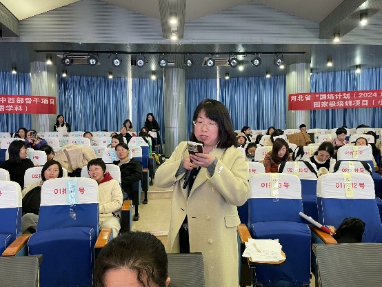 课间休息时,学员们求知若渴,就教学研究中的难点问题请教交流。张教授耐心答疑,凭借扎实的专业素养与亲切的态度,收获了学员们的一致好评。