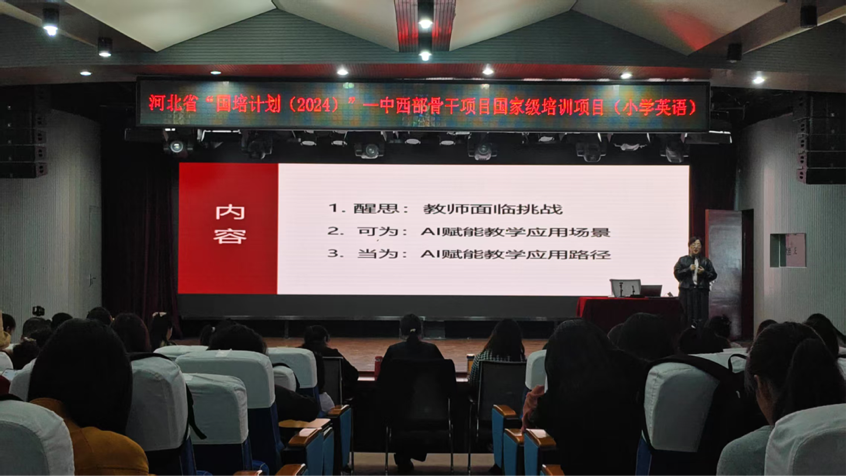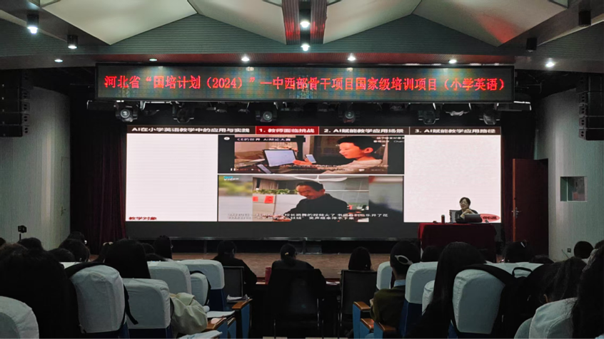 近日,太阳成集团tyc122ccvip开展的“国培计划(2024)”——中西部骨干项目国家级培训项目(小学英语)现场,王润兰教授为省级骨干教师带来“人工智能在小学英语教育中的应用与实践”讲座,助力教师接轨时代,将人工智能科学融入教学。
