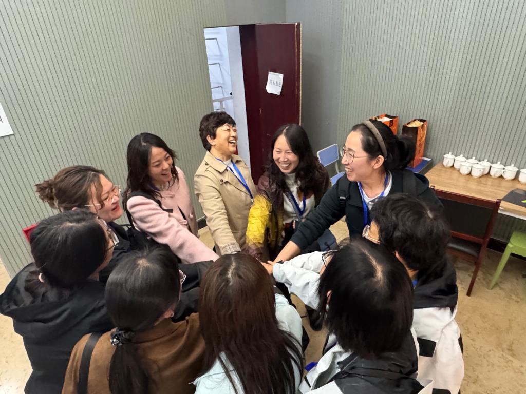 各位学员老师签到后,公司于晚上六点半在南院十阶梯召开开班典礼。典礼以奏唱国歌开场,全体学员肃立,齐唱国歌,现场气氛庄重严肃。典礼上,唐翠云经理指出本次国培项目以新课标背景下小学英语教学实践与创新为主题,体现聚焦师德铸魂,突出智能技术赋能,全面实践创新,注重文化传承四大特色,在人工智能与教育变革的十字路口,用智慧照亮未来,共同探索小学英语教育的无限可能。学员代表老师发言表示要珍惜机会,潜心学习,知行合一,勇于实践,结合教学实际,把培训所得转化为课堂改革的行动,以空杯心态聆听专家讲座。典礼结束后,班主任老师又组织开展了热火朝天的团建活动,现场氛围瞬间沸腾起来。老师们迫不及待地结组,相互热情地介绍着彼此,迅速增进了解。各小组围绕着团队名称、口号及独特pose的设计展开激烈讨论,创意火花四溅。有的小组精心设计准备团结一心拔萝卜的情景剧;有的小组用英语介绍彼此,体现专业特色;有的小组在讨论团队创意口号;还有的小组在排练创意pose。在最终展示环节,各组老师用幽默的语言,有创意的情景剧,激情澎湃的口号获得了阵阵掌声。