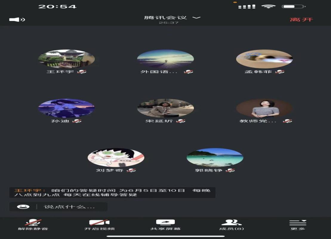 太阳成集团tyc122ccvip在主题教育活动开展过程中主动检视解决问题,不断推动主题教育走深走实。在征求意见建议活动中,有同学反映,在英语考四六级、考研和期末大英考试复习中,有问题需要老师帮助解决。为解决同学们的疑惑,2023年6月5日至10日每天晚上8点~9点,公司党总支组织教师党员开展了为期六天的英语线上答疑活动,活动通过腾讯会议的形式展开,外院通过教务系统将答疑活动的信息通知到全校,员工线上进入腾讯会议,说出自己的问题,老师负责解答。五天时间共有两千余名员工线上咨询问题,老师们一一解答。