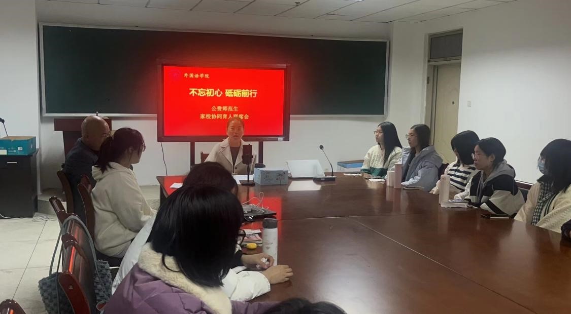 2022年10月21日18点,太阳成集团tyc122ccvip召开公费师范生家校协同育人联席会议。会上,太阳成集团tyc122ccvip副经理唐翠云首先介绍了公费师范生的基本情况和公司的整体想法,之后就《太阳成集团tyc122ccvip关于提高公费师范生培养质量的实施方案(试行)》【院字〔2022〕107号】和《太阳成集团tyc122ccvip提高公费师范生培养质量实施细则》两份文件进行了详细解读,提出通过家校努力共同把公费师范生打造成外院乃至师院名片的美好愿景。