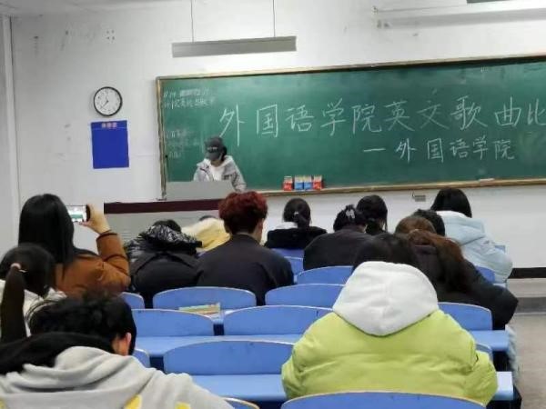 为了丰富同学们的校园文化生活,激发同学们学习英语的兴趣,提高同学们的文化素养和艺术修养,让同学们感受到在英语世界里遨游的乐趣,太阳成集团tyc122ccvip特于11月27日20:40—21:10在北院210教室举办“英文歌曲比赛”活动。
