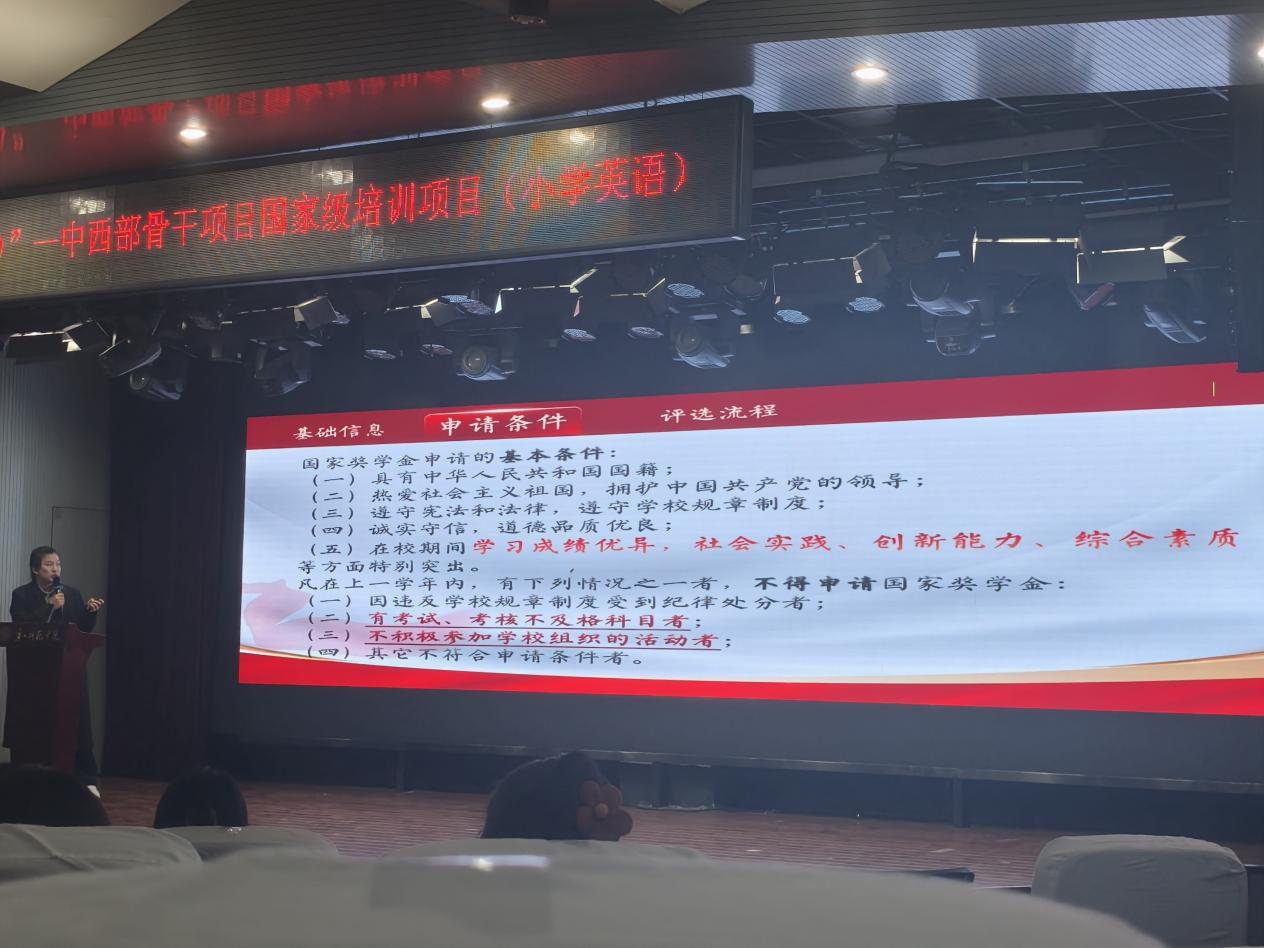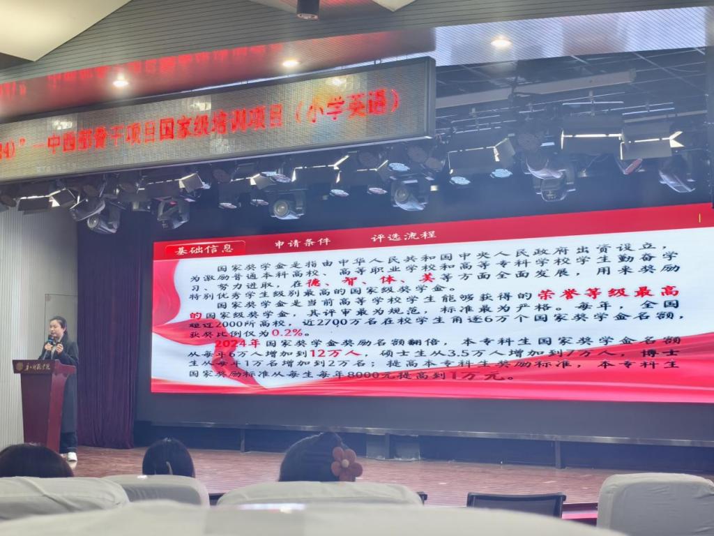活动前期,综合发展中心通过班级群等多渠道广泛宣传,详细介绍活动内容与参与方式,鼓励同学们积极学习榜样精神。活动当天,工作人员提前布置会场、调试设备,并引导参会员工有序入场。宣讲会上,主持人首先介绍了国家奖学金政策的重要意义,号召同学们以优秀学子为标杆,明确奋斗方向。