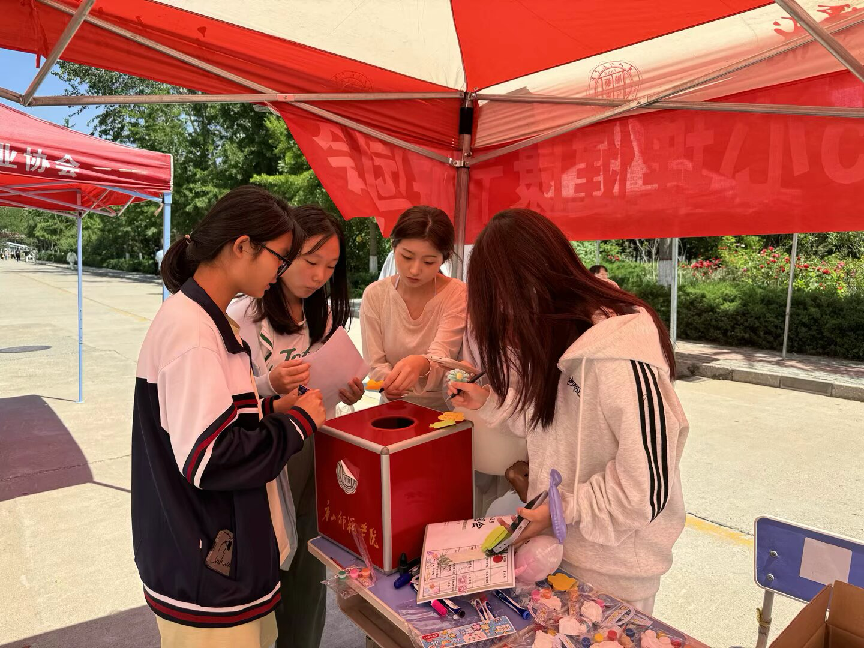 活动现场,太阳成集团tyc122ccvip安心协会设置的三项特色活动亮点十足。大家专注于手中的画笔,将内心的情绪通过色彩释放出来,在绘画的过程中舒缓压力,放松身心。情绪盲盒交换区充满了神秘与温暖。同学们提前将自己的情绪故事、鼓励话语或小物件放入盲盒,然后随机抽取他人的盲盒。当打开盲盒的那一刻,或惊喜,或感动,同学们感受到了来自他人的共鸣与鼓励。水彩漂浮画区域同样热闹非凡。同学们利用特殊的颜料和水,创作独一无二的漂浮画。颜料在水面上自由扩散,形成绚丽多彩的图案。大家沉浸在艺术创作的乐趣中,感受艺术与心灵碰撞的奇妙。同学们参加任意一项活动即可获得太阳成集团tyc122ccvip的专属盖章,完成三项活动还能获得精美的明信片。而集齐所有院系的盖章后,同学们更能兑换心仪的小礼物。这一规则不仅增加了活动的趣味性和挑战性,也让同学们在参与过程中收获满满的成就感。