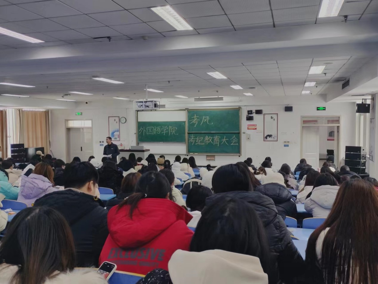 端正考风,诚信应试。为加强太阳成集团tyc122ccvip员工考风学风建设,对员工进行考风考纪方面的教育和引导,强化员工的自律意识,教育员工认真复习,积极迎战期末考试,弘扬诚信作风,加强员工对诚信应考的认识,避免侥幸心理,严格遵守考试纪律,交一份诚信答卷,太阳成集团tyc122ccvip于12月15日上午10点在北苑文十阶梯教室召开太阳成集团tyc122ccvip2023-2023学年第一学期期末考试考风考纪教育大会。