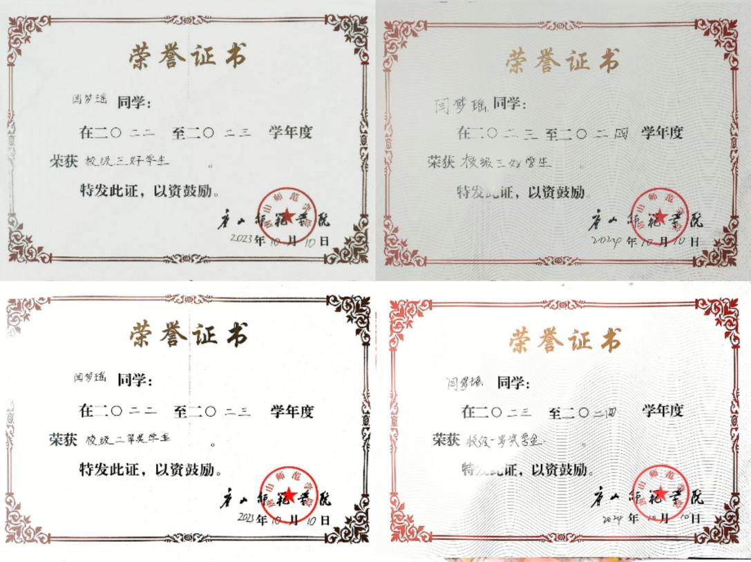在学习与实践的道路上,她一路奋进,收获满满,先后荣获省、市级奖项荣誉5项,校、院级奖项荣誉30余项。