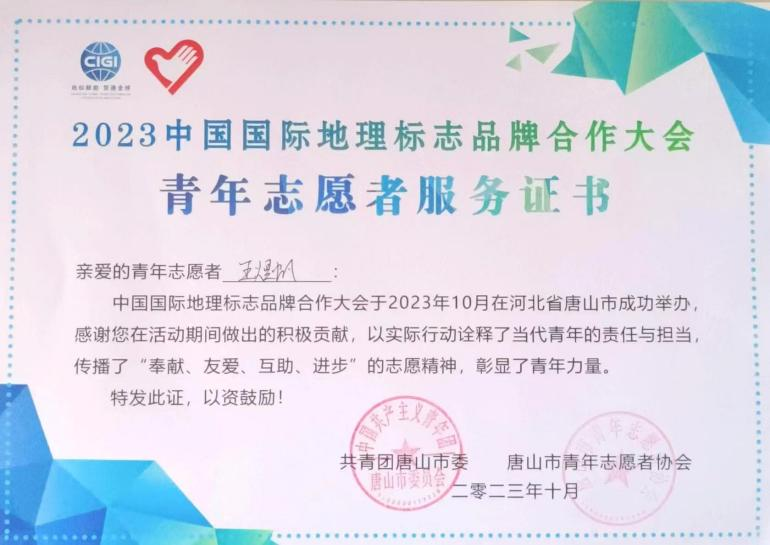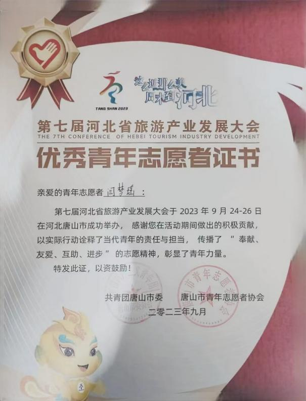 王煜帆的志愿服务之路,就像蒲公英的种子,飘洒在社区防疫站、省旅发大会、地理标志大会、唐山市马拉松等活动现场。他获得市级优秀青年志愿者证书,200小时的服务时长化作“公益DNA”,融入他的青春血脉。每一次志愿服务,都是他爱心的绽放,传递着温暖与希望。