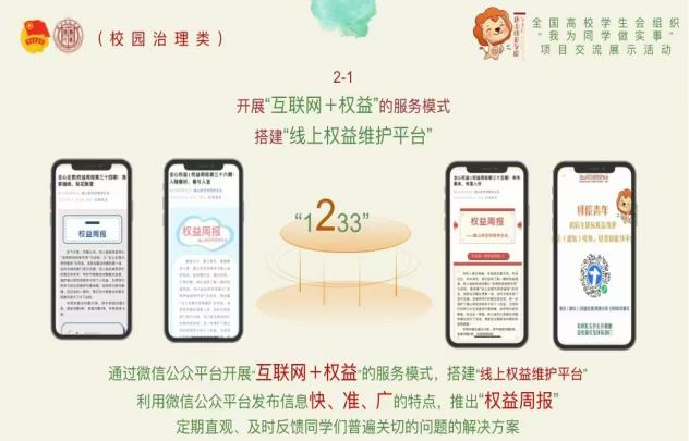 在权益维护中心,王煜帆是创新服务的先锋。他独创“问题灌溉系统”,构建起宿舍报修、食堂建议、环境优化等30类问题的直达解决通道,高效解决同学们的生活难题。在全国高校服务项目评选中,他的项目更是脱颖而出,荣获“最受欢迎奖”和“国家级优秀项目”两项殊荣,为校园服务树立了榜样。