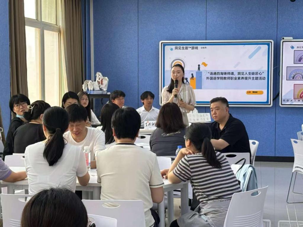 在“语通四海铸师魂,洞见生涯砺匠心”教育活动中,公司党总支副书记曹丽君担任主讲,通过情景模拟与互动游戏相结合的形式,带领教师们沉浸式体验职业生涯的全周期挑战与成长,引导大家深刻认识教师职业价值,启迪长远规划智慧。