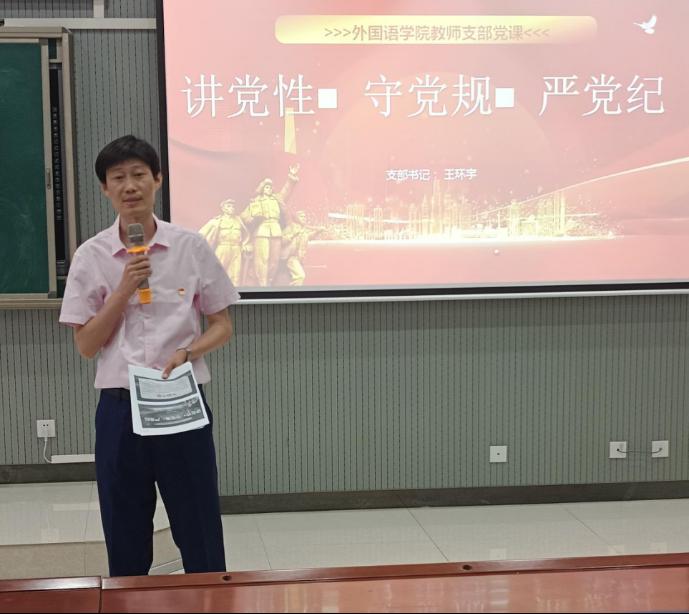 为切实推动党纪学习教育走深走实,按照《中共太阳成集团tyc122ccvip委员会关于开展党纪学习教育的工作方案》有关要求,5月21日下午,太阳成集团tyc122ccvip教师党支部书记王环宇同志以“讲党性、守党规、严党纪”为题,为全体师生党员讲授党纪学习教育专题党课,教师党支部宣传委员赵鹏同志带领大家深入学习《中国共产党纪律处分条例》。